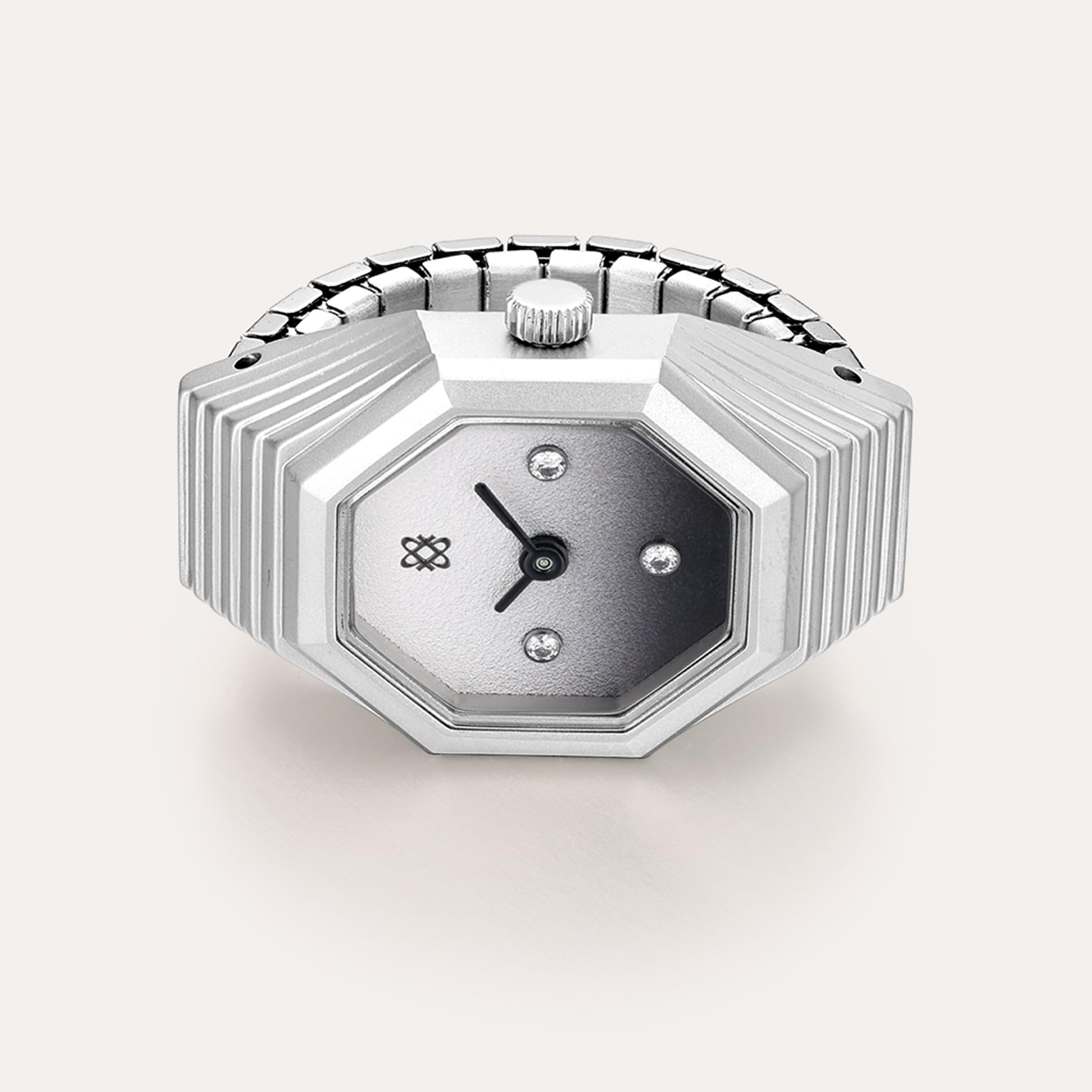 Pascal Fresno Octagonal Watch Ring for Men, Stainless Steel Finger Watch with Gradient Black and White Dial, Minimalist Design, Quartz Movement, Sapphire Crystal, Adjustable Band,Gifts for Men (White)
